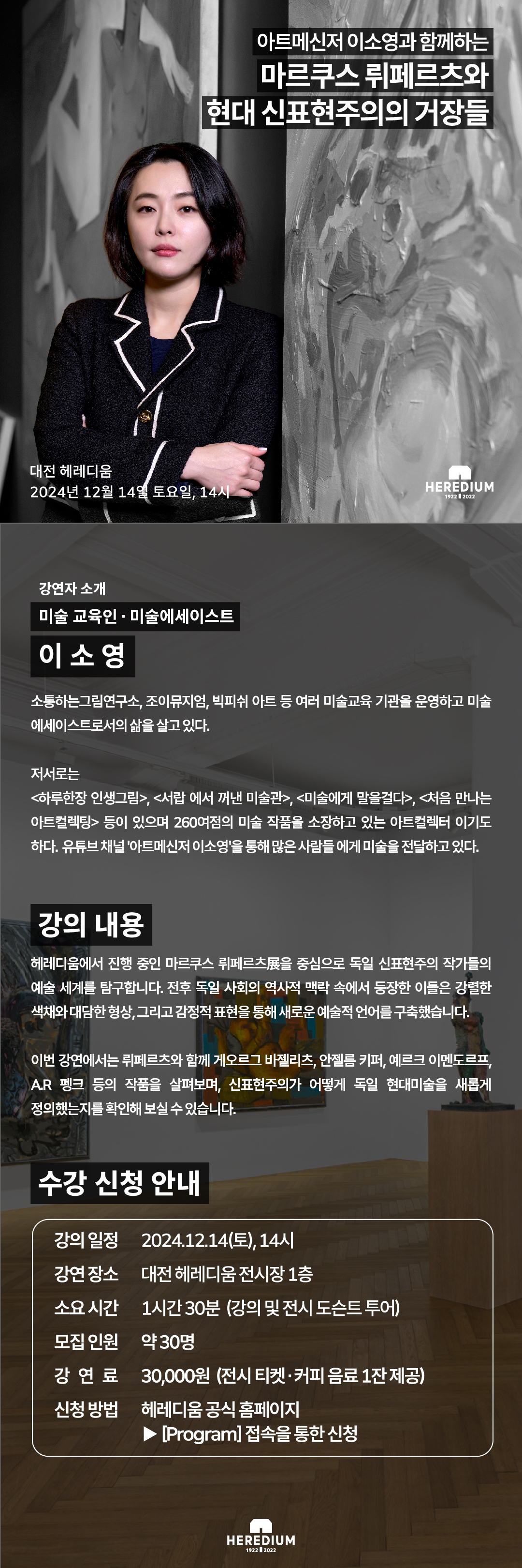 * 입장 마감 시간은 예매하신 관람 시간으로부터 30분까지입니다. 강의 시작 후 입장이 제한될 수 있습니다.